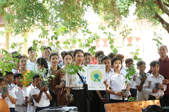 わたしにとって自然は、まわりにあるすべてのものです。家族と一緒に畑仕事をすることも楽しいし、土をさわったり、苗木を植えたりすると、心が元気になります。でも、町のあちこちにごみが落ちているのが大きな問題だと思います。学校や市場、お寺、川のそばにもごみがあって、とても気になります。もっと人々がごみのことを考えてくれたらいいのにと思います。「子供の森」計画では、木の植え方やごみの管理について学べて、とても楽しかったです。友だちと一緒に苗木に水をあげたり、木を育てることができるのがうれしいです。木はわたしたちに新鮮な空気や木陰をくれるので、これからも大切にしたいと思います。将来は学校や地域が緑でいっぱいになって、みんなが気持ちよく過ごせる場所にしたいです。来年も木を植える活動をしたいし、いつか日本の子どもたちとも一緒に遊んだり学んだりできたらいいなと思います。
